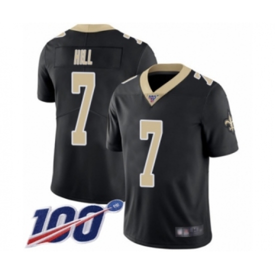 >Men's New Orleans Saints #7 Taysom Hill Black Team Color Vapor Untouchable Limited Player 100th Season Football Jersey
