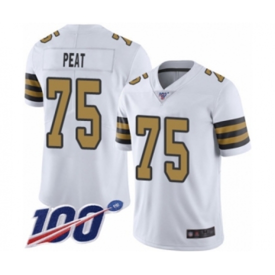 >Men's New Orleans Saints #75 Andrus Peat Limited White Rush Vapor Untouchable 100th Season Football Jersey