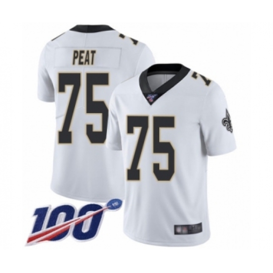 >Men's New Orleans Saints #75 Andrus Peat White Vapor Untouchable Limited Player 100th Season Football Jersey