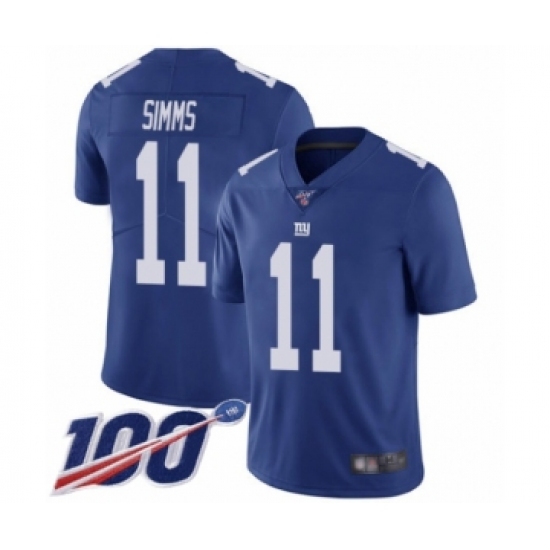 >Men's New York Giants #11 Phil Simms Royal Blue Team Color Vapor Untouchable Limited Player 100th Season Football Jersey