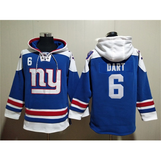 Men's New York Giants #6 Jaxson Dart Blue Ageless Must-Have Lace-Up Pullover Hoodie