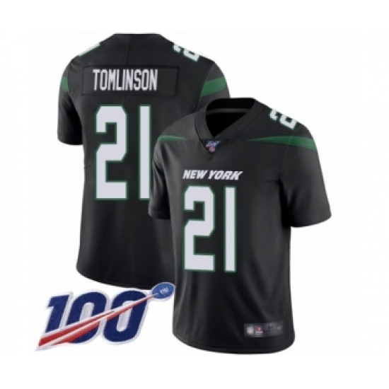 >Men's New York Jets #21 LaDainian Tomlinson Black Alternate Vapor Untouchable Limited Player 100th Season Football Jersey