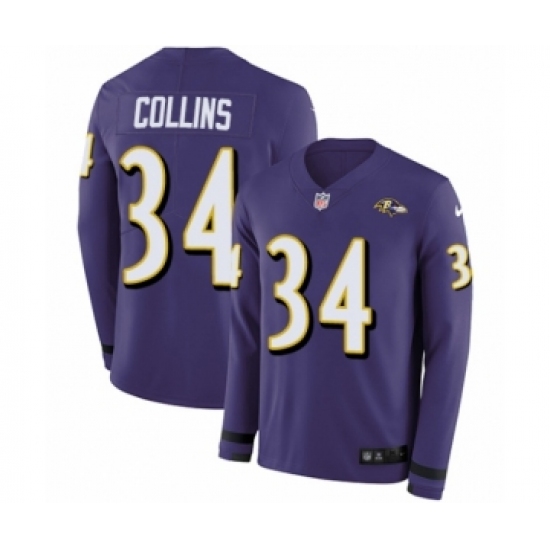 Men's Nike Baltimore Ravens #34 Alex Collins Limited Purple Therma Long Sleeve NFL Jersey