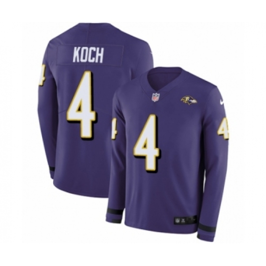 >Men's Nike Baltimore Ravens #4 Sam Koch Limited Purple Therma Long Sleeve NFL Jersey