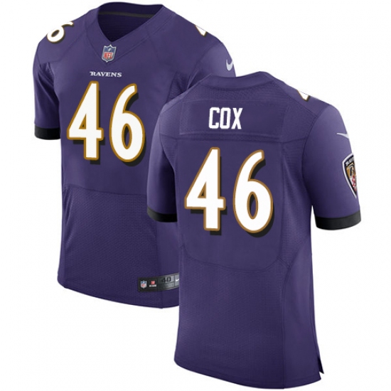 Men's Nike Baltimore Ravens #46 Morgan Cox Elite Purple Team Color NFL Jersey