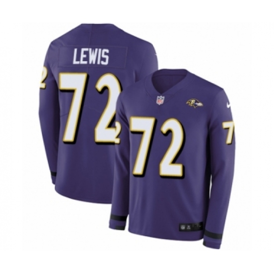 Men's Nike Baltimore Ravens #72 Alex Lewis Limited Purple Therma Long Sleeve NFL Jersey