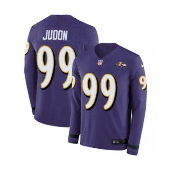 >Men's Nike Baltimore Ravens #99 Matt Judon Limited Purple Therma Long Sleeve NFL Jersey