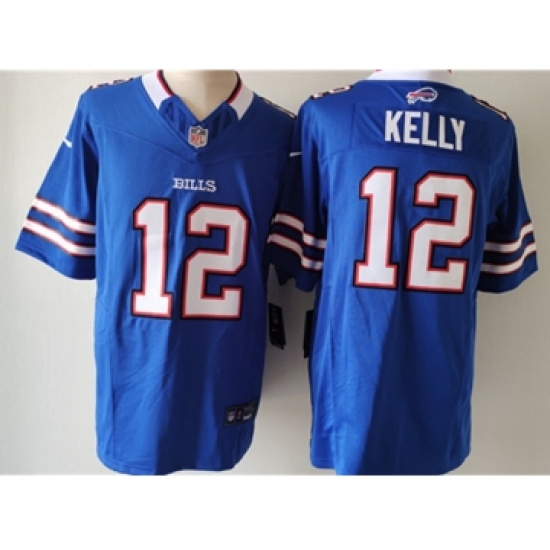 >Men's Nike Buffalo Bills #12 Jim Kelly Blue 2023 F.U.S.E. Vapor Untouchable Limited Football Stitched Jersey
