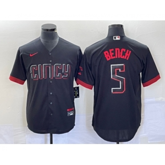 Men's Nike Cincinnati Reds #5 Johnny Bench Black 2023 City Connect Cool Base Stitched Baseball Jersey