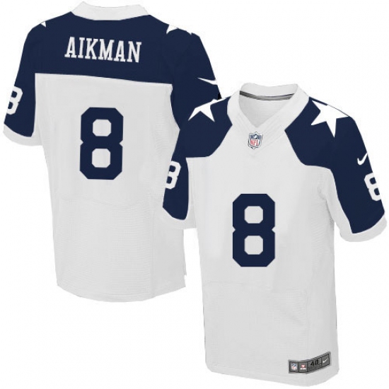 Men's Nike Dallas Cowboys #8 Troy Aikman Elite White Throwback Alternate NFL Jersey