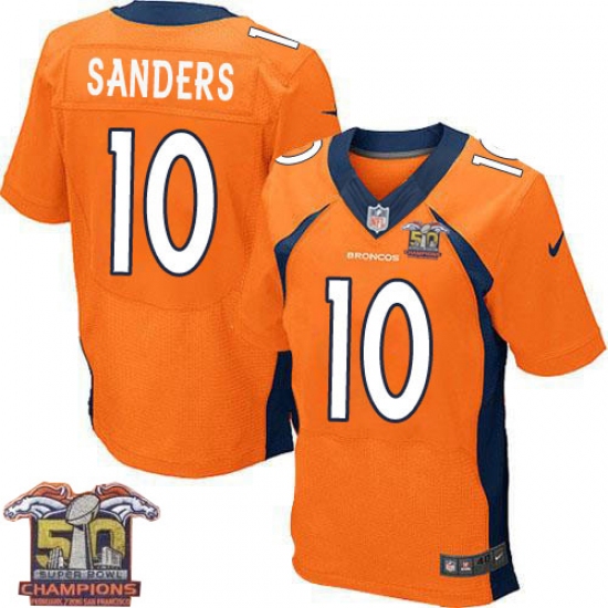 Home>NFL>Denver Broncos>Emmanuel Sanders>Men's Nike Denver Broncos #10 Emmanuel Sanders Elite Orange Team Color Super Bowl 50 Champions NFL Jersey