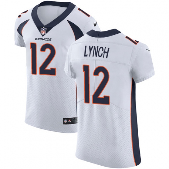>Men's Nike Denver Broncos #12 Paxton Lynch White Vapor Untouchable Elite Player NFL Jersey