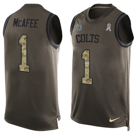 Home>NFL>Indianapolis Colts>Pat McAfee>Men's Nike Indianapolis Colts #1 Pat McAfee Limited Green Salute to Service Tank Top NFL Jersey
