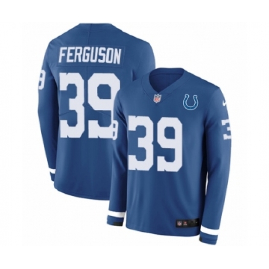Men's Nike Indianapolis Colts #39 Josh Ferguson Limited Blue Therma Long Sleeve NFL Jersey