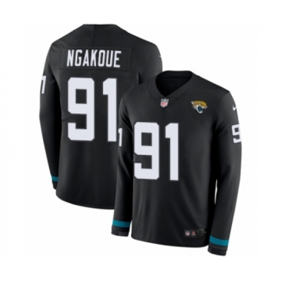 >Men's Nike Jacksonville Jaguars #91 Yannick Ngakoue Limited Black Therma Long Sleeve NFL Jersey