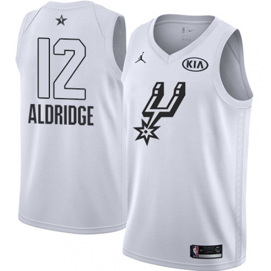 >Men's Nike Jordan San Antonio Spurs #12 LaMarcus Aldridge Swingman White 2018 All-Star Game NBA Jersey