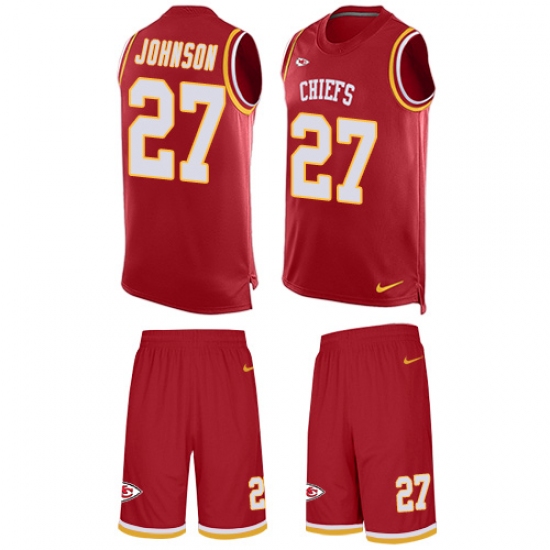 Men's Nike Kansas City Chiefs #27 Larry Johnson Limited Red Tank Top Suit NFL Jersey