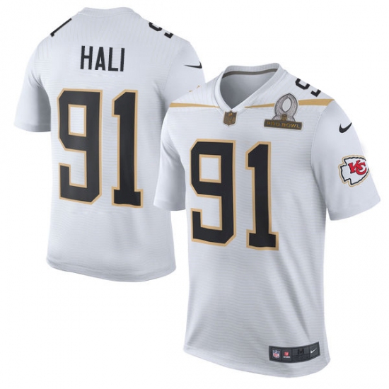 Men's Nike Kansas City Chiefs #91 Tamba Hali Elite White Team Rice 2016 Pro Bowl NFL Jersey