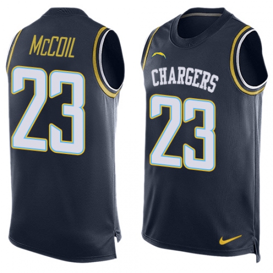 Home>NFL>Los Angeles Chargers>Dexter McCoil>Men's Nike Los Angeles Chargers #23 Dexter McCoil Limited Navy Blue Player Name & Number Tank Top NFL Jersey