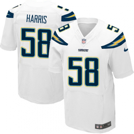 Home>NFL>Los Angeles Chargers>Nigel Harris>Men's Nike Los Angeles Chargers #58 Nigel Harris Elite White NFL Jersey