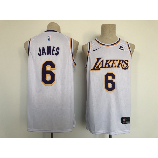 >Men's Nike Los Angeles Lakers #6 LeBron James White Swingman Association Edition Jersey