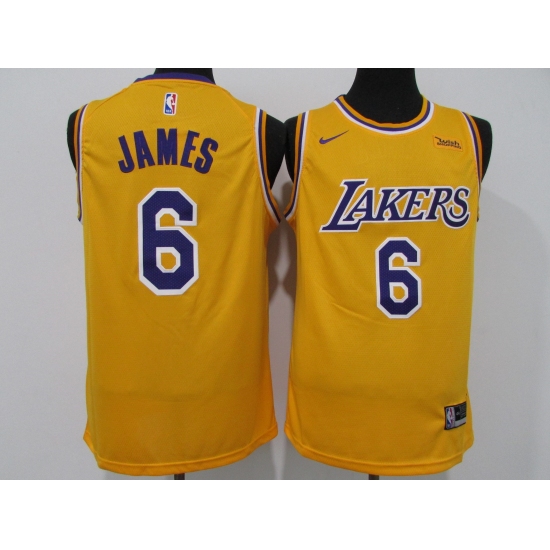 Men's Nike Los Angeles Lakers #6 LeBron James Yellow Basketball Swingman Association Edition Jersey