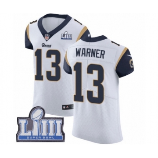 Men's Nike Los Angeles Rams #13 Kurt Warner White Vapor Untouchable Elite Player Super Bowl LIII Bound NFL Jersey