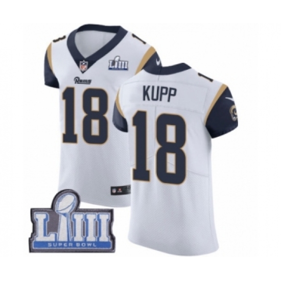 >Men's Nike Los Angeles Rams #18 Cooper Kupp White Vapor Untouchable Elite Player Super Bowl LIII Bound NFL Jersey