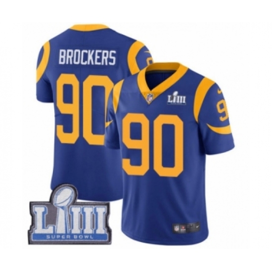 >Men's Nike Los Angeles Rams #90 Michael Brockers Royal Blue Alternate Vapor Untouchable Limited Player Super Bowl LIII Bound NFL Jersey