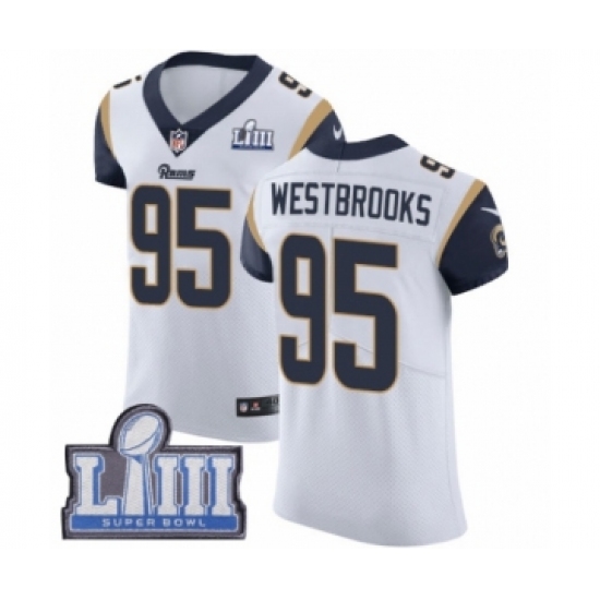 >Men's Nike Los Angeles Rams #95 Ethan Westbrooks White Vapor Untouchable Elite Player Super Bowl LIII Bound NFL Jersey