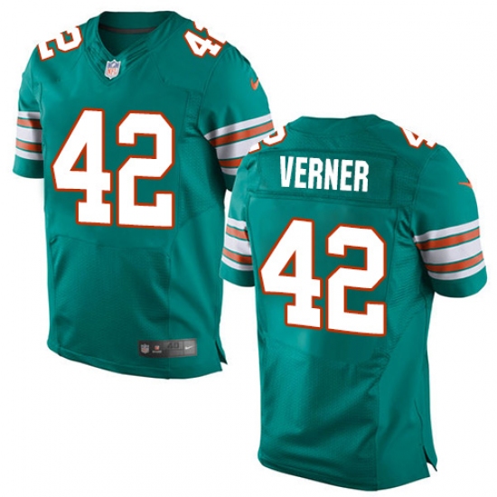 Home>NFL>Miami Dolphins>Alterraun Verner>Men's Nike Miami Dolphins #42 Alterraun Verner Elite Aqua Green Alternate NFL Jersey