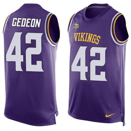 Home>NFL>Minnesota Vikings>Ben Gedeon>Men's Nike Minnesota Vikings #42 Ben Gedeon Limited Purple Player Name & Number Tank Top NFL Jersey