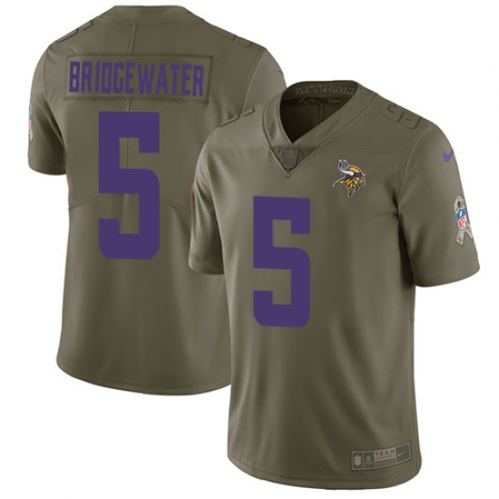 Home>NFL>Minnesota Vikings>Teddy Bridgewater>Men's Nike Minnesota Vikings #5 Teddy Bridgewater Limited Olive 2017 Salute to Service NFL Jersey