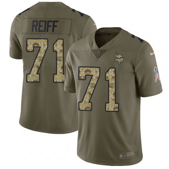 Home>NFL>Minnesota Vikings>Riley Reiff>Men's Nike Minnesota Vikings #71 Riley Reiff Limited Olive/Camo 2017 Salute to Service NFL Jersey