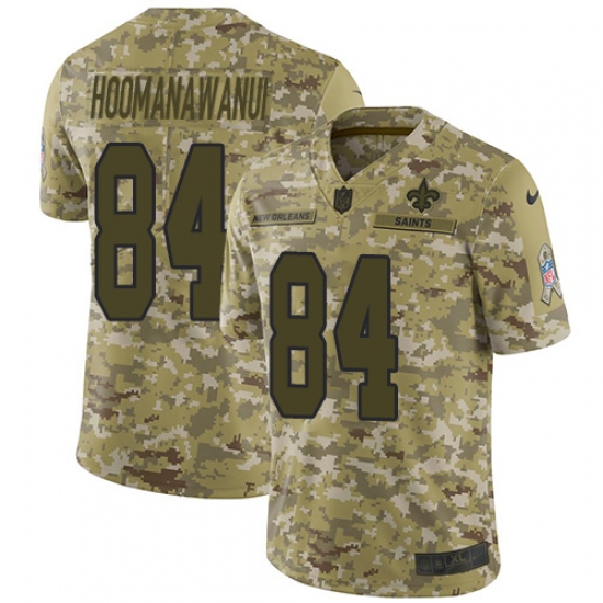 >Men's Nike New Orleans Saints #84 Michael Hoomanawanui Limited Camo 2018 Salute to Service NFL Jersey
