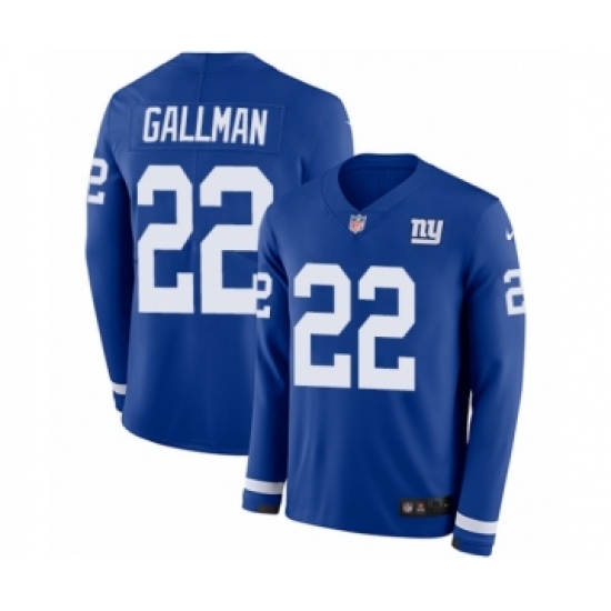 >Men's Nike New York Giants #22 Wayne Gallman Limited Royal Blue Therma Long Sleeve NFL Jersey