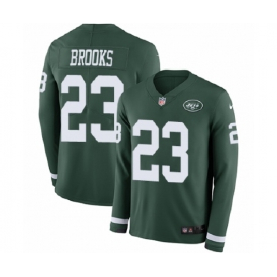 Men's Nike New York Jets #23 Terrence Brooks Limited Green Therma Long Sleeve NFL Jersey