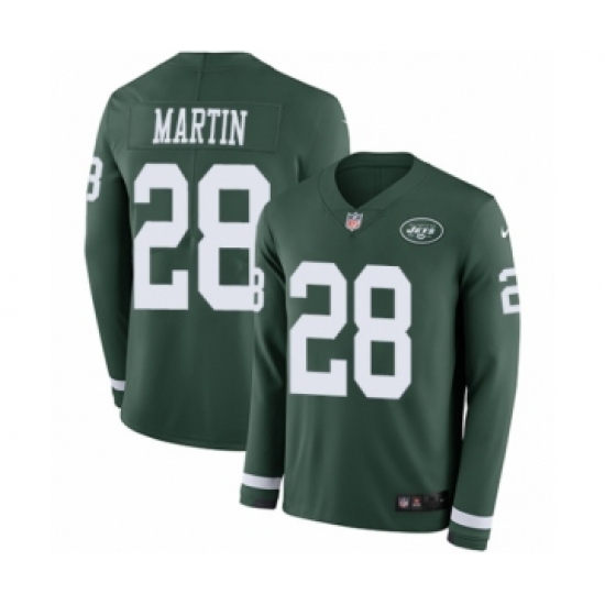 >Men's Nike New York Jets #28 Curtis Martin Limited Green Therma Long Sleeve NFL Jersey
