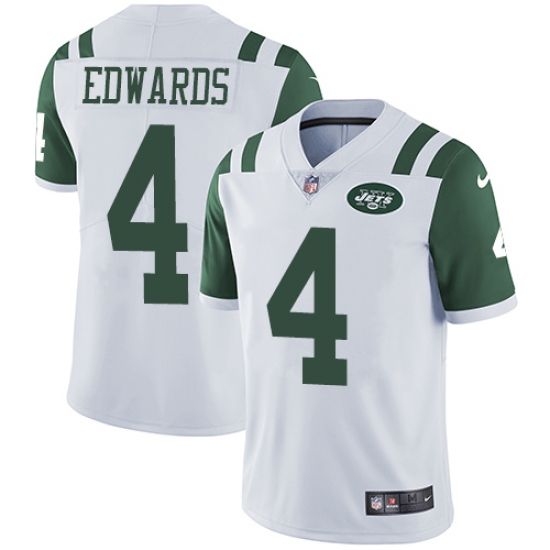 Home>NFL>New York Jets>Lac Edwards>Men's Nike New York Jets #4 Lac Edwards White Vapor Untouchable Limited Player NFL Jersey
