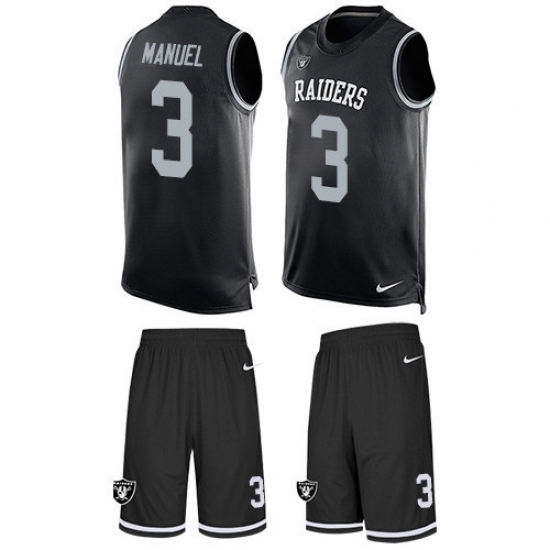 Men's Nike Oakland Raiders #3 E. J. Manuel Limited Black Tank Top Suit NFL Jersey