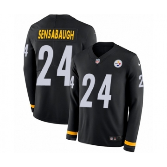 >Men's Nike Pittsburgh Steelers #24 Coty Sensabaugh Limited Black Therma Long Sleeve NFL Jersey