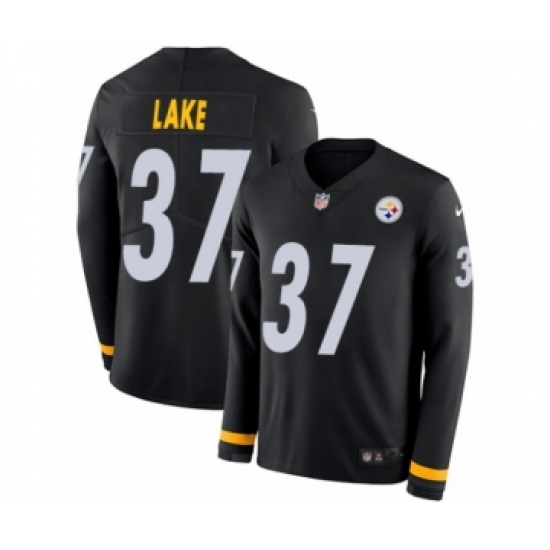 >Men's Nike Pittsburgh Steelers #37 Carnell Lake Limited Black Therma Long Sleeve NFL Jersey