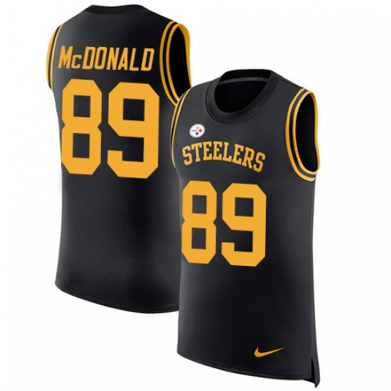 Home>NFL>Pittsburgh Steelers>Vance McDonald>Men's Nike Pittsburgh Steelers #89 Vance McDonald Black Rush Player Name & Number Tank Top NFL Jersey