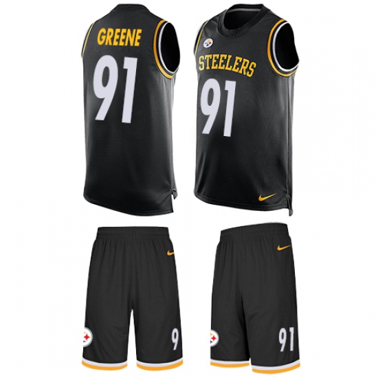 Home>NFL>Pittsburgh Steelers>Kevin Greene>Men's Nike Pittsburgh Steelers #91 Kevin Greene Limited Black Tank Top Suit NFL Jersey