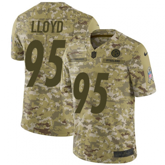 >Men's Nike Pittsburgh Steelers #95 Greg Lloyd Limited Camo 2018 Salute to Service NFL Jersey