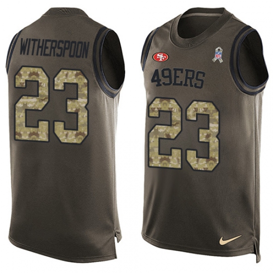 Home>NFL>San Francisco 49ers>Ahkello Witherspoon>Men's Nike San Francisco 49ers #23 Ahkello Witherspoon Limited Green Salute to Service Tank Top NFL Jersey