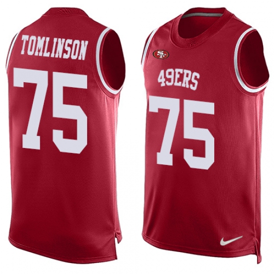 Home>NFL>San Francisco 49ers>Laken Tomlinson>Men's Nike San Francisco 49ers #75 Laken Tomlinson Limited Red Player Name & Number Tank Top NFL Jersey