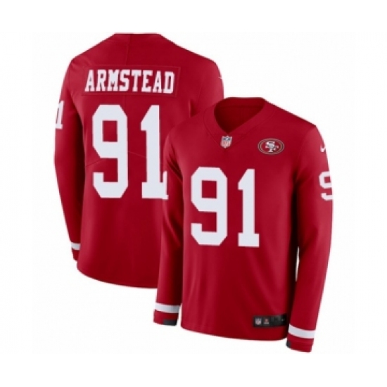 Men's Nike San Francisco 49ers #91 Arik Armstead Limited Red Therma Long Sleeve NFL Jersey