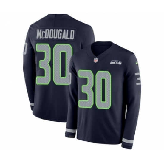 Men's Nike Seattle Seahawks #30 Bradley McDougald Limited Navy Blue Therma Long Sleeve NFL Jersey