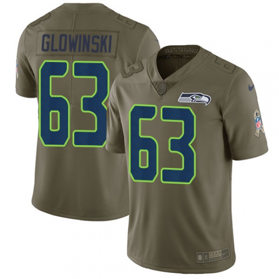 Home>NFL>Seattle Seahawks>Mark Glowinski>Men's Nike Seattle Seahawks #63 Mark Glowinski Limited Olive 2017 Salute to Service NFL Jersey